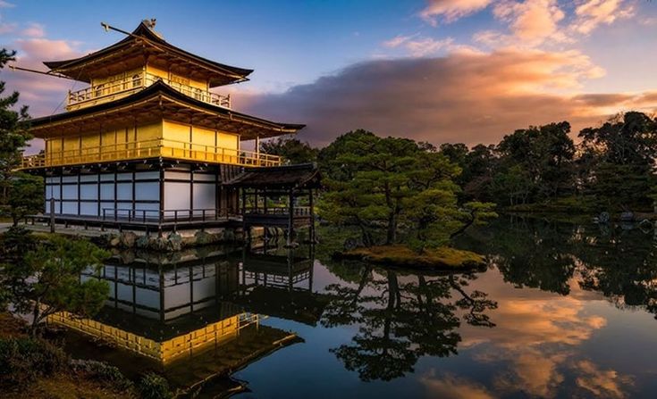 Một trong những công trình kiến trúc Nhật Bản nổi tiếng nhất thế giới chính là Chùa Kinkakuji (Chùa Vàng) tại Kyoto. Được xây dựng vào thế kỷ XIV, chùa này mang đậm dấu ấn của triết lý Zen trong kiến trúc Nhật Bản. Ngôi chùa được phủ vàng 24 cara, tạo nên một vẻ đẹp rực rỡ, nổi bật trên nền không gian thiên nhiên yên bình. Phong cách nội thất Nhật Bản trong Chùa Kinkakuji là sự hòa hợp hoàn hảo giữa thiên nhiên và công trình nhân tạo, thể hiện qua việc sử dụng những vật liệu tự nhiên như gỗ, đá và giấy shoji.